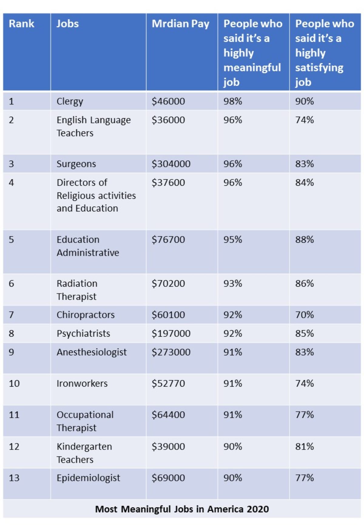 Most And Least Meaningful Jobs Payscale