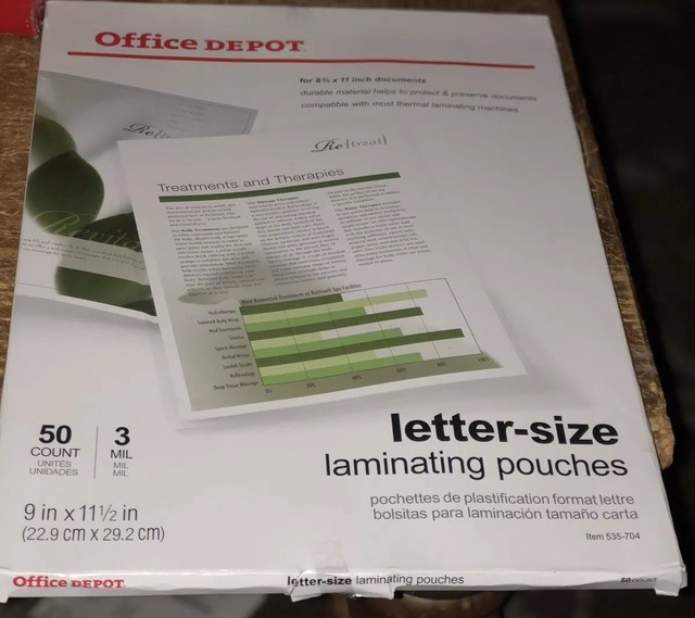 Office Depot 50 Laminating Pouches Letter 3 Mil 9 X 11 5 For Sale Online Ebay
